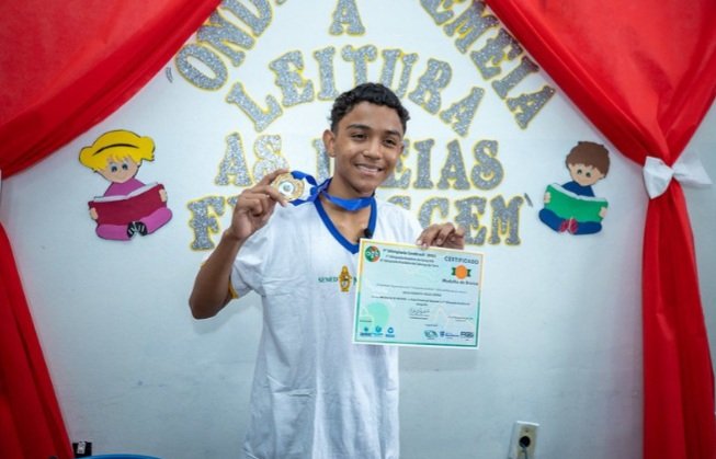 O aluno Érick Serna, da Prefeitura de Manaus, que estuda na escola municipal Olga Figueiredo, na zona Norte da cidade, trouxe para a Secretaria Municipal de Educação (Semed) a medalha de bronze, conquistada no fim de semana na 7ª edição da Olimpíada de Geografia e Ciências da Terra (GeoBrasil), da Universidade Federal de Alfenas (Unifal), Minas Gerais.