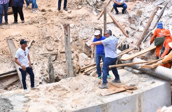 Prefeito David Almeida fiscaliza obras de recuperação de trecho interditado na avenida 7 de Setembro
