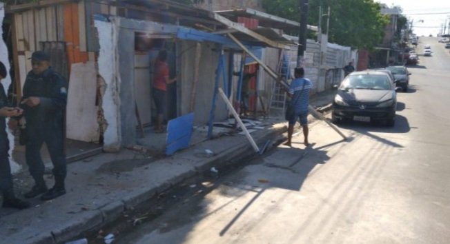Edificações ilegais e que obstruíam uma calçada na avenida Nhamundá com a rua Afonso Pena, na Praça 14 de Janeiro, zona Sul, foram removidas, nesta quinta-feira, 21/7, durante ação da Prefeitura ...