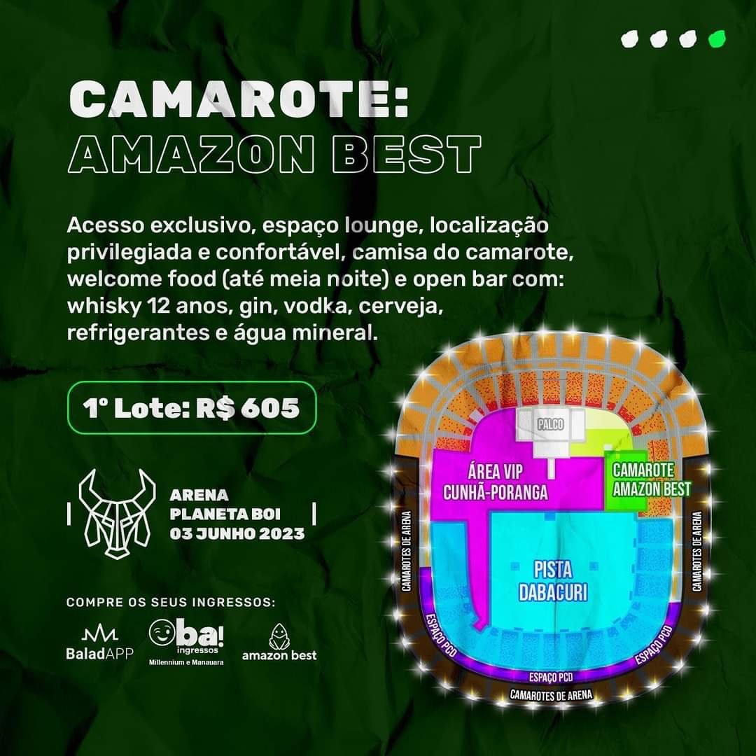 O Camarote Amazon Best será exclusivo para mil pessoas e os ingressos – que estão no primeiro lote – custam R$ 605.