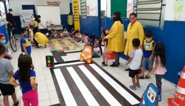 Alunos do Centro Municipal de Educação Infantil (Cmei) São Judas Tadeu, no bairro Alfredo Nascimento, zona Norte, receberam nesta quarta-feira, 1º/9, uma ação sobre educação em mobilidade urbana, prom...