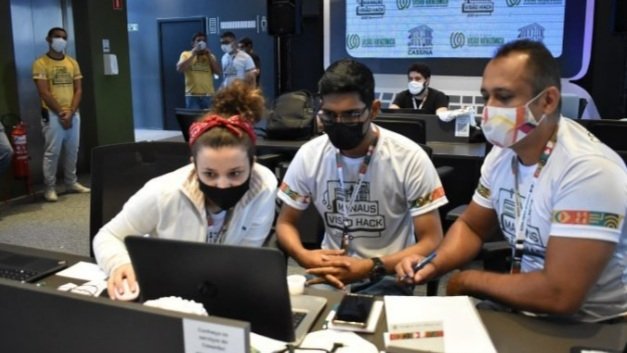 As equipes da maratona “Manaus Visão Hack 2021”, evento promovido pela Prefeitura de Manaus, por meio da Secretaria Municipal do Trabalho, Empreendedorismo e Inovação (Semtepi), em parceria com o Instituto Visão Amazônica, cumpriram a primeira etapa do projeto, a entrega do resumo estruturado dos produtos para a comissão julgadora, neste sábado, 28/8, no Casarão da Inovação Cassina, no centro histórico.