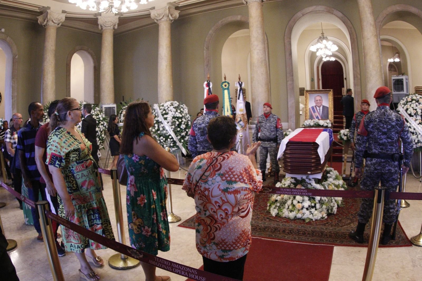 As primeiras homenagens no Teatro Amazonas tiveram início às 14h, sendo reservadas para a família do político e homenagens das autoridades.