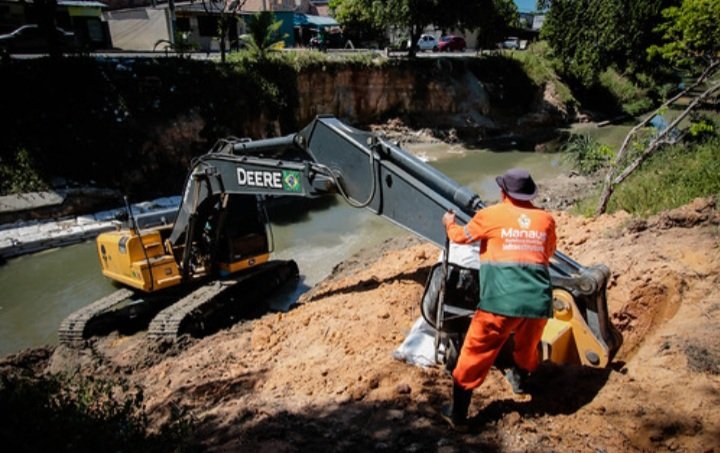 A Prefeitura de Manaus realiza obra de contenção de rio-rap, nas margens do igarapé do Mestre Chico, no trecho localizado na avenida Marques da Silveira, bairro Cachoeirinha, zona Sul da capital. A área estava com problemas de desmoronamento e já atingia uma lateral da pista.