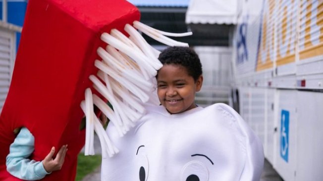 Uma das crianças beneficiadas foi a pequena Luiza da Luz, 7, do 2º ano, que, por meio da ação, teve o primeiro tratamento dentário. “Ainda bem que eu vim, meu dente estava mole e começou a doer. A dentista arrancou e eu não senti nada”, disse a corajosa Luiza.