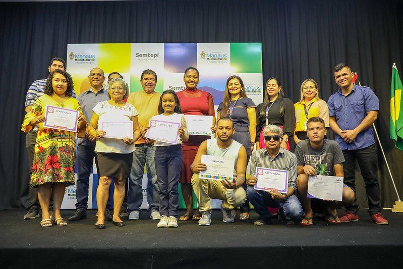 A Prefeitura de Manaus, por meio da Secretaria Municipal do Trabalho, Empreendedorismo e Inovação (Semtepi), em parceria com a Secretaria da Mulher, Assistência Social e Cidadania (Semasc), realizou, nesta terça-feira, 15/8, a certificação geral de 600 alunos, que realizaram cursos e oficinas de qualificação no Centro de Convivência da Família e do Idoso – Prefeito José Fernandes. A solenidade aconteceu no auditório do shopping Cidade Leste, na zona Leste.