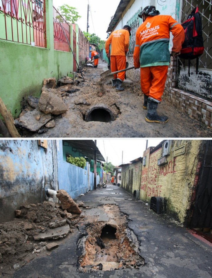 As equipes do distrito trabalham, ainda, na recuperação de rede drenagem profunda com aproximadamente 40 metros de extensão no beco Samaritano, dessa vez no bairro Coroado I. O local também apresentou problemas de alagamentos, mas, agora, a situação está sendo solucionada pelas equipes de obras da prefeitura.