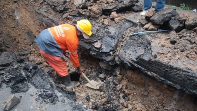A Prefeitura de Manaus, por meio da Secretaria Municipal de Infraestrutura (Seminf), iniciou, nesta quarta-feira, 24/8, os serviços emergenciais de recuperação de drenagem profunda do beco São Vicente, no bairro Japiim, zona Sul. O trabalho consiste na troca dos tubos danificados que comprometiam a vazão das águas, provocando uma erosão na área e, consequentemente, em dias de chuvas, o alagamento das casas.